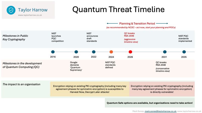 The customer in question had got on the front foot, taking the risk presented by Quantum Computers seriously. It had begun to survey it’s infrastructure and networks to form a picture of it’s use of different cryptography methods and algorithms. Which is something you should do by the way! (Talk to us at Taylor Harrow for help).